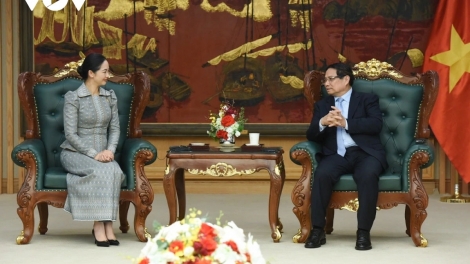 (VOVWORLD) - នាល្ងាចថ្ងៃទី ២៨ ខែមេសា ឆ្នាំ២០២៥ នៅនៅទីស្នាក់ការរដ្ឋាភិបាល នៃរដ្ឋធានីហាណូយ នាយករដ្ឋមន្ត្រីរដ្ឋាភិបាលវៀតណាម លោកហ្វាម មិញ ជិញ បានអញ្ជើញទទួលជួបជាមួយលោកជំទាវ ចម និម្មល រដ្ឋមន្ត្រីក្រសួងពាណិជ្ជកម្ម នៃព្រះរាជាណាចក្រកម្ពុជាបានដឹកនាំគណៈប្រតិភូកម្ពុជា អញ្ជើញចូលជួបសម្តែងការគួរសម និងពិភាក្សាការងារ ក្នុងឱកាសបំពេញបេសកកម្មចូលរួមកិច្ចប្រជុំទ្វេភាគីកម្ពុជា-វៀតណាម។
