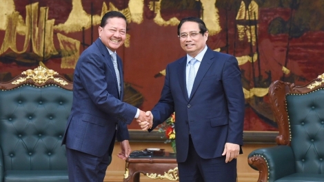 (VOVWORLD) - នាព្រឹកថ្ងៃទី ១៦ មេសា នៅទីក្រុងហាណូយ នាយករដ្ឋមន្ត្រីវៀតណាមលោក ហ្វាម មិញជីញ បានទទួលជួបឧបនាយករដ្ឋមន្ត្រីកម្ពុជាលោក នេត សាវឿន ក្នុងឱកាសដែលលោកអញ្ជើញចូលរួមកិច្ចប្រជុំកំពូលលើកទី ៤ នៃវេទិកាភាពជាដៃគូដើម្បីកំណើនបៃតង និងគោលដៅសកល (P4G) នៅទីក្រុងហាណូយ។