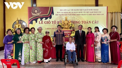 (VOVWORLD) - សមាគមអាណិកជនវៀតណាមនៅខេត្ត Udon Thani ភាគឦសានប្រទេសថៃ កាលពីថ្ងៃទី ៦ ខែមេសា បានប្រារព្ធពិធីសែនខួបស្តេច Hung ។ នេះជាសកម្មភាពប្រចាំឆ្នាំដែលប្រជាជនរៀបចំឡើងនៅថ្ងៃទី ១០ ខែមាឃ ជារៀងរាល់ឆ្នាំ ដើម្បីរំលឹកវិញ្ញាណក្ខណ្ឌនិងសម្តែងការដឹងគុណចំពោះស្តេច Hung ដែលបានកសាងនិងការពារប្រទេសជាតិ។