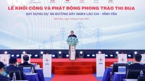 លោកនាយករដ្ឋមន្ត្រី ហ្វាម មិញជីញ ចូលរួមពិធីបើកការដ្ឋានសាងសង់ខ្សែបញ្ជូនអគ្គិសនី ៥០០ kV Lao Cai - Vinh Yen