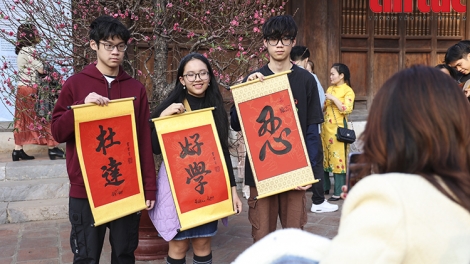 (VOVWORLD) - នៅថ្ងៃទី ៣១ខែមករា (ថ្ងៃទី ៣ នៃបុណ្យតេត) តូបអក្សរផ្ចង់នៅតំបន់អក្សរសាស្ត្រ Van Mieu - Quoc Tu Giam បានប្រមូលផ្តុំទៅដោយមនុស្សមកសុំអក្សរផ្ចង់ ជូនពរឆ្នាំថ្មីឱ្យមានសុខភាពល្អ និងជោគជ័យ។