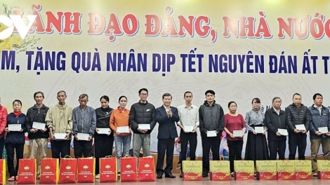 (VOVWORLD) - នាព្រឹកថ្ងៃទី ១៥ មករា នៅខេត្ត Kon Tum អនុប្រធានរដ្ឋសភាលោក Tran Quang Phuong បានអញ្ជើញចូលរួមកម្មវិធី “បុណ្យតេតជួបជុំ - និទាឃរដូវដឹងគុណបក្ស” ដើម្បីជូនពរបុណ្យតេតនិងជូនអំណោយដល់កម្មករនិយោជិតដែលមានស្ថានភាពលំបាក។ នៅទីនេះ អនុប្រធានរដ្ឋសភាបានមានប្រសាសន៍ថា៖