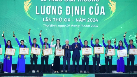 (VOVWORLD) - នាយប់ថ្ងៃទី ២៩ ខែវិច្ឆិកា នៅទីក្រុង ថៃ បិញ ខេត្ត ថៃ បិញ មជ្ឈិមសម្ព័ន្ធយុវជនកុម្មុយនិស្តហូជីមិញបានរៀបចំពិធីប្រគល់ពានរង្វាន់លឿង ឌិញ គួ (Luong Dinh Cua) លើកទី ១៩។