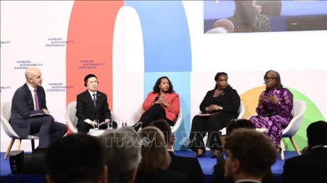(VOVWORLD) - ឧបនាយករដ្ឋមន្ត្រី លោក Ho Duc Phoc ដឹកនាំគណៈប្រតិភូវៀតណាមចូលរួមសន្និសីទទីក្រុង Hamburg លើកទីមួយស្តីពីការអភិវឌ្ឍន៍ប្រកបដោយចីរភាព (HSC) ដែលប្រព្រឹត្តទៅចាប់ពីថ្ងៃទី ៧ ដល់ថ្ងៃទី ៨ ខែតុលា។ នៅទីនេះ ឧបនាយករដ្ឋមន្ត្រី លោក Ho Duc Phoc បានជួបជាមួយថ្នាក់ដឹកនាំជាន់ខ្ពស់អាល្លឺម៉ង់ មូលនិធិវិនិយោគអាកាសធាតុ (CIF) មូលនិធិអាកាសធាតុបៃតង (GCF) និងសមាគមធុរកិច្ចអាល្លឺម៉ង់ - អាស៊ីប៉ាស៊ីហ្វិក (OAV) ដើម្បីពិភាក្សាអំពីបញ្ហាសំខាន់ៗ ដូចជាការឆ្លើយតបទៅនឹងការប្រែប្រួលអាកាសធាតុ; ការផ្លាស់ប្តូរថាមពល និងការទាក់ទាញការវិនិយោគ។