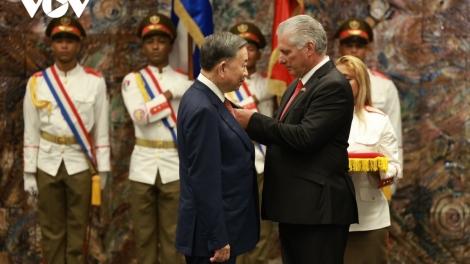 (VOVWORLD) - នេះគឺជាពានរង្វាន់ខ្ពង់ខ្ពស់បំផុតរបស់បក្សនិងរដ្ឋគុយបាដើម្បីទទួលស្គាល់ការរួមវិភាគទានរបស់លោកអគ្គលេខាបក្ស ប្រ ធានរដ្ឋតូ ឡឹម ក្នុងការអភិវឌ្ឍសាមគ្គីភាព មិត្តភាព និងទំនាក់ទំនងស្មោះត្រង់រវាងបក្ស រដ្ឋ និងប្រជាជនវៀតណាមនិងគុយបា។