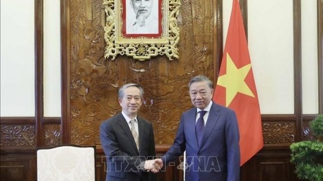 (VOVWORLD) - នារសៀលថ្ងៃទី ១៧ កក្កដា នៅវិមានប្រធានរដ្ឋ លោក To Lam ប្រធានរដ្ឋវៀតណាមបានទទួលជួបលោក Xiong Bo ឯកអគ្គរដ្ឋទូតវិសាមញ្ញ និងពេញសមត្ថភាពនៃសាធារណៈរដ្ឋប្រជាមានិតចិនប្រចាំនៅវៀតណាម មកជម្រាបលាក្នុងឱកាសបញ្ចប់អាណត្តិបេសកកម្មនៅវៀតណាម។