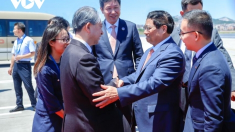 (VOVWORLD) - នៅវេលាម៉ោង ១១៖៣៥ នាទីព្រឹកថ្ងៃទី ២៤ ខែមិថុនា (ម៉ោងក្នុងស្រុក) នាយករដ្ឋមន្ត្រីវៀតណាម លោក Pham Minh Chinh និងគណៈប្រតិភូជាន់ខ្ពស់វៀតណាមបានមកដល់អាកាសយានដ្ឋាន Zhou Shuizi ទីក្រុង Dalian ខេត្ត Liaoning ប្រទេសចិន ចាប់ផ្តើមចូលរួមសន្និសីទប្រចាំឆ្នាំលើកទី ១៥ របស់អ្នកត្រួសត្រាយនៃវេទិកាសេដ្ឋកិច្ចពិភពលោក (WEF Dalian ២០២៥) និងដំណើរទស្សនកិច្ចការងារនៅប្រទេសចិន។