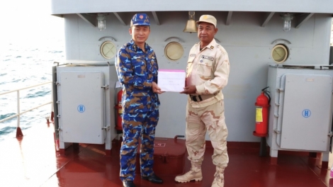 (VOVWORLD) - នាថ្ងៃទី ១៤ មិថុនា នៅតំបន់ទឹកប្រវត្តិសាស្ត្រវៀតណាម-កម្ពុជា នាវាលេខ២៥១ និង នាវាលេខ ១១៤១ បានធ្វើការយាមល្បាតរួមប្រចាំឆ្នាំស្របតាមបទប្បញ្ញត្តិស្តីពីការសម្របសម្រួលយាមល្បាតរួម និងបង្កើតបណ្តាញទំនាក់ទំនងរវាងកងទ័ពជើងទឹកប្រជាជនវៀតណាម និងកងទ័ពជើងទឹកកម្ពុជា។