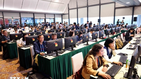 (VOVWORLD) - មហាសន្និបាតលើកទី ១៤ របស់បក្សកុម្មុយនិស្តវៀតណាមកំពុងប្រព្រឹត្តទៅនៅមជ្ឈមណ្ឌលសន្និបាតជាតិ (នៃទីក្រុងហាណូយ) ដោយមានការចូលរួមពីអ្នកសារព័ត៌មាន និងប្រព័ន្ធផ្សព្វផ្សាយទាំងជាតិនិងអន្តរជាតិជាង ៦០០ នាក់។