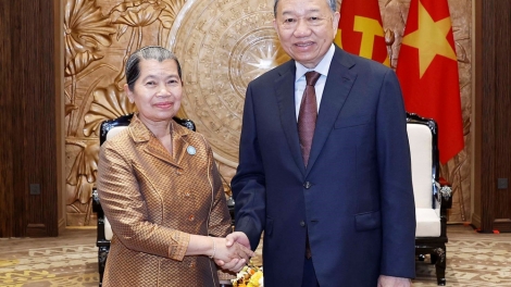 (VOVWORLD) - អគ្គលេខាបក្សកុម្មុយនិស្តវៀតណាមលោក តូ ឡឹម និងអនុប្រធានគណបក្សប្រជាជនកម្ពុជា ប្រធានក្រុមប្រឹក្សាជាតិរណសិរ្សសាមគ្គីអភិវឌ្ឍន៍មាតុភូមិកម្ពុជា លោកស្រី ម៉ែន សំអន បានសម្តែងទំនុកចិត្តថា ទំនាក់ទំនងសហប្រតិបត្តិការរវាងបក្សទាំងពីរ និងប្រទេសទាំងពីរនឹងបន្តត្រូវបានពង្រឹង និងអភិវឌ្ឍន៍ ព្រមទាំងបានអះអាងនូវការបន្ត ថែរក្សា ពូនជ្រុំ ពង្រឹង និងអភិវឌ្ឍន៍ទំនាក់ទំនងមិត្តភាពវៀតណាម-កម្ពុជា សម្រាប់មនុស្សជំនាន់ក្រោយៗផងដែរ។