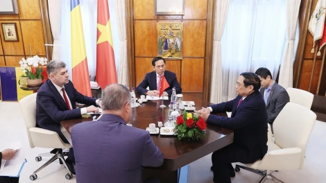 (VOVWORLD) - ក្នុងក្របខ័ណ្ឌនៃដំណើរទស្សនកិច្ចជាផ្លូវការនៅរូម៉ានី កាលពីថ្ងៃទី ២២ មករា (ម៉ោងក្នុងតំបន់) នៅរដ្ឋធានី Bucharest នាយករដ្ឋមន្ត្រីវៀតណាម លោក Pham Minh Chinh និងនាយករដ្ឋមន្ត្រីរ៉ូម៉ានី លោក Ion-Marcel Ciolacu បានអញ្ជើញចូលរួមវេទិកា ធុរកិច្ចវៀតណាម - រូម៉ានី។