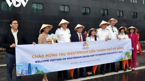 (VOVWORLD) - នាព្រឹកថ្ងៃទី ២ មករា កប៉ាល់ទេសចរណ៍លំដាប់ផ្កាយ ៥ ឈ្មោះ Westerdam នៃក្រុមហ៊ុន Holland America Line ដែលដឹកភ្ញៀវទេសចរចំនួន ២០០០ នាក់បានមកដល់កំពង់ផែ Tien Sa ដើម្បីទស្សនាទីក្រុង Da Nang។