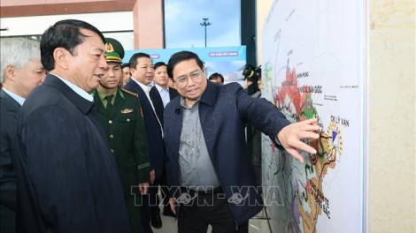 (VOVWORLD) - ក្នុងកម្មវិធីការងារនៅទីក្រុង Cao Bang នារសៀលថ្ងៃទី១ ខែមករា នាយករដ្ឋមន្ត្រីវៀតណាម លោក Pham Minh Chinh បានអញ្ជើញទៅត្រួតពិនិត្យស្ថានភាព បន្ទាប់ពីច្រកទ្វារព្រំដែនអន្តរជាតិ Tra Linh ស្រុក Trung Khanh ខេត្ត Cao Bang ត្រូវបានលើកកម្រិតឲ្យក្លាយទៅជាច្រកទ្វារព្រំដែនអន្តរជាតិ។