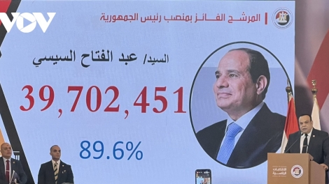 (VOVWORLD) - យោងតាមលទ្ធផលរបស់ទីភ្នាក់ងារជាតិរៀបចំការបោះឆ្នោតអេហ្ស៊ីបបានប្រកាសកាលពីថ្ងៃទី ១៨ ខែធ្នូ ប្រធានាធិបតីអេហ្ស៊ីប លោក Abdel Fattah El Sisi បានដណ្ដលមជ័យជំនះលើសលប់ជាមួយនឹងសម្លេងគាំទ្រជាង ៨៩% ដើម្បីបន្តកាន់តំណែងដឹកនាំប្រទេសសម្រាប់អាណត្តិ ៦ ឆ្នាំខាងមុខ។