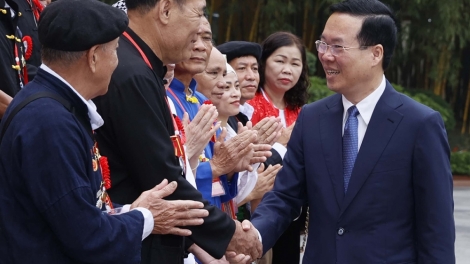 ប្រធានរដ្ឋ លោក Vo Van Thuong អញ្ជើញជួបសំណេះសំណាលជាមួយគណៈប្រតិភូជនមានកិត្យានុភាពដែលជាជនជាតិភាគតិច