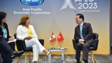 (VOVWORLD) - នេះជាការអះអាងរបស់លោកប្រធានរដ្ឋ Vo Van Thuong ក្នុងជំនួបជាមួយប្រធានាធិបតីប៉េរូ Dina Ercilia Boluarte Zegarra កាលពីថ្ងៃទី ១៧ វិច្ឆិកា (ម៉ោងក្នុងស្រុក) នៅទីក្រុង San Francisco រដ្ឋ California សហរដ្ឋអាមេរិក ក្នុងឱកាសចូលរួមសប្តាហ៍កំពូលនៃកិច្ចប្រជុំសេដ្ឋកិច្ចអាស៊ី-ប៉ាស៊ីហ្វិក លើកទី៣០ (APEC)។