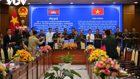(VOVWORLD) - រណសិរ្សនៃខេត្តទាំងពីរឯកភាពគ្នាបន្តអនុវត្តន៍ល្អការងារឃោសនាដល់ប្រជាជនឱ្យយល់ដឹងអំពីអត្ថន័យនៃការកសាងខ្សែបន្ទាត់ព្រំដែនសន្តិភាព និងមិត្តភាពដោះស្រាយឧប្បត្តិហេតុដែលកើតឡើងនៅតំបន់ព្រំដែន បង្កលក្ខណៈងាយស្រួលដល់សកម្មភាពកសាងខ្សែបន្ទាត់ព្រំដែន និងបង្គោលព្រំដែន។