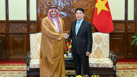 (VOVWORLD) - នារសៀលថ្ងៃទី ៣១ ខែធ្នូ នៅទីក្រុងហាណូយ ប្រធានរដ្ឋវៀតណាមលោក លឿង គឿង បានទទួលជួបឯកអគ្គរដ្ឋទូតអារ៉ាប៊ីសាអូឌីត លោក Mohammed Ismaeil A. Dahlwy និងឯកអគ្គរដ្ឋទូត Mong Meynardo Los Banos Montealegre នៃប្រទេសហ្វីលីពីន ដែលបានមកជំរាបលាក្នុងឱកាសបញ្ចប់អាណត្តិបេសកកម្មនៅវៀតណាម។
