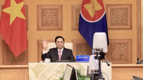 (VOVWORLD) - នៅថ្ងៃទី២២ ខែវិច្ឆិកា កិច្ចប្រជុំកំពូលពិសេសអាស៊ាន-ចិនត្រូវបានប្រារព្ធ ធ្វើឡើងជាផ្លូវការតាមប្រព័ន្ធវីដេអូក្រោមអធិបតីភាពរបស់ប្រធានរដ្ឋចិនលោក Xi Jinping។ នាយករដ្ឋមន្រ្តីរដ្ឋាភិបាល វៀតណាមលោក Pham Minh Chinh បាន អញ្ជើញចូលរួមកិច្ចប្រជុំ ដោយបន្តបញ្ជាក់ថា វៀតណាមជាសមាជិកមានការ ទទួលខុសត្រូវនៃសមាគមន៍ប្រជាជាតិអាស៊ីអាគ្នេយ៍ (អាស៊ាន) ព្រមទាំងពង្រីក តួនាទីជាស្ពានតភ្ជាប់ ដើម្បីជំរុញទំនាក់ទំនងអាស៊ាន-ចិនឲ្យកាន់តែស៊ីជម្រៅ ពិតប្រាកដជាក់ស្ដែង សក្តិសមនឹងឋានៈនៃទំនាក់ទំនងភាពជាដៃគូយុទ្ធសាស្ត្រគ្រប់ជ្រុង ជ្រោយ ដែលទើបតែបានបង្កើតឡើងនៅកិច្ចប្រជុំកំពូលជាប្រចាំអាស៊ាន-ចិន លើកទី២៤ កាលពីថ្ងៃទី២៦ តុលា ឆ្នាំ២០២១។