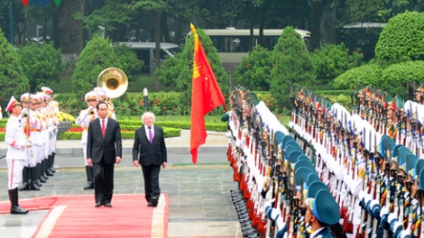 (VOV)_ប្រធានាធិបតីអៀរឡង់ លោក Michael Daniel Higgins កំពុងបំពេញទស្សនកិច្ចថ្នាក់រដ្ឋនៅវៀតណាម តាមសេចក្ដីអញ្ជើញរបស់ប្រធានរដ្ឋវៀតណាម លោក Tran Dai Quang ។ ត្រូវបានប្រព្រឹត្តទៅចាប់ពីថ្ងៃទី៥ ដល់ថ្ងៃទី១៤វិច្ឆិកា ដំណើរទស្សនកិច្ចលើកនេះបានគូសសញ្ញាមួយអំពី២០ឆ្នាំការបង្កើតទំនាក់ទំនងការទូត រវាងវៀតណាមនិងអៀរឡង់ (១៩៩៦-២០១៦) និងបើកចេញដំណាក់កាលអភិវឌ្ឍន៍ថ្មី ក្នុងទំនាក់ទំនងសហប្រតិបត្តិការរវាងប្រទេសទាំងពីរ។