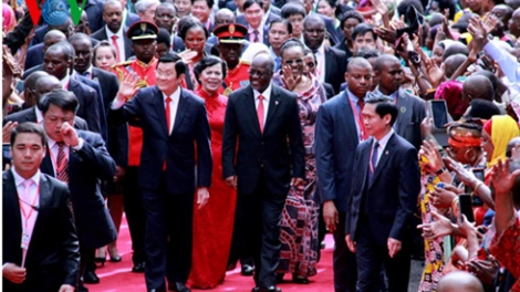 (VOVworld)-ចាប់ពីថ្ងៃទី៩ដល់ថ្ងៃទី១៥មិនា ប្រធាន រដ្ឋវៀតណាមលោក Truong Tan Sang បានអញ្ជើញ ទៅបំពេញទស្សនកិច្ចថ្នាក់រដ្ឋនៅប្រទេសតង់ហ្សានី ប្រទេស ម៉ូសំប៊ិកនិងប្រទេសអ៊ីរ៉ង់។ ដំណើរទស្សន កិច្ចទាំងអស់នេះទទួលបានលទ្ធផលសំ ខាន់ៗជាច្រើននិងគូសចេញ របត់ថ្មីក្នុងទំនាក់ទំនងរវាងវៀតណាមជាមួយ ប្រទេសទាំងបីនេះដោយ ឈានចូលដំណាក់កាលសហប្រតិបត្តិការថ្មីកាន់តែជាក់ស្តែងនិងប្រ កបដោយប្រសិទ្ធិភាព។