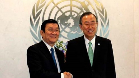 (VOVworld)-នាថ្ងៃទី២៣កញ្ញា ប្រធានរដ្ឋវៀតណាម លោក Truong Tan Sang បានដឹកនាំគណៈប្រតិភូជាន់ ខ្ពស់វៀតណាមចូលរួមសន្និសីទកំពូលអ.ស.ប សម្រាប់អនុម័តលើរបៀបវារៈ២០៣០ស្តីពីការអភិវឌ្ឍន៍ និរន្តភាព នៅក្រុងញ៉ូវយ៉ករបស់អាមេរិក។ ការដែលលោកប្រធានរដ្ឋ អញ្ជើញចូលរួមនឹងមានបទថ្លែងមតិនៅសន្និសីទធំបំផុតនេះរបស់ អ.ស.ប បានសរឲ្យឃើញនូវការរួមចំណែកយ៉ាងសកម្មចូលក្នុងបណ្តា បញ្ហាសកលរបស់វៀតណាម។