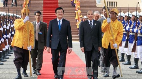 (VOVworld)- ថ្ងៃទី២៣ធ្នូ ប្រធានរដ្ឋវៀតណាមលោក Truong Tan Sang បាន ដឹកនាំគណៈប្រតិភូជាន់ខ្ពស់ អញ្ជើញទៅបំពេញទស្សនកិច្ចថ្នាក់រដ្ឋនៅប្រទេស កម្ពុជាតាមសេចក្តីអញ្ជើញរបស់ព្រះករុណាព្រះបាទ សម្តេចព្រះបរមនាថ នរោត្តម សីហមុនី ព្រះមហាក្សត្រនៃព្រះរាជាណា ចក្រកម្ពុជា។ ដំណើរទស្សនកិច្ច នេះគឺសំដៅពង្រឹងនិងពង្រីកទំនាក់ ទំនងជំនឿជាក់គ្នាទៅវិញទៅមករវាងថ្នាក់ ដឹកនាំនៃប្រទេសទាំងពីរ ព្រមទាំងជាកម្លាំងចលករជម្រុញទំនាក់ទំនងមិត្តភាព កិច្ចសហប្រតិ បត្តិការលើគ្រប់វិស័យរវាងប្រទេសទាំងពីរឲ្យមានការបោះជំហានថ្មី ចំពោះការអភិវឌ្ឍន៍នៃប្រទេសនីមួយៗ។