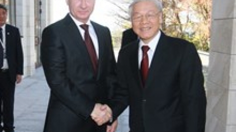(VOVworld)-អគ្គលេខាបក្សកុម្មុយនិស្តវៀតណាម លោក Nguyen Phu Trong កំពុងបំពេញទស្សនកិច្ច ជាផ្លូវការនៅប្រទេសរុស្ស៊ី តាមសេចក្តីអញ្ជើញរបស់ ប្រធានាធិបតីរុស្ស៊ីលោក Vladimir Putin។ ប្រប្រព្រឹត្តទៅក្នុងកាលៈទេសៈ ដែល ទំនាក់ទំនងនៃប្រទេសទាំងពីរវៀតណាម-រុស្ស៊ីកំពុងមាន ការអភិ វឌ្ឍន៍យ៉ាងល្អប្រសើដំណើរទស្សនកិច្ចនេះបានបង្កើតកម្លាំងចរករថ្មី ធ្វើឲ្យ ទំនាក់ទំនងដៃគូ យុទ្ធសាស្រ្តវៀតណាម-រុស្ស៊ីកាន់តែស៊ីជម្រូវពីមួយថ្ងៃ ទៅមួយថ្ងៃ។