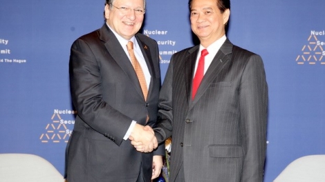 (VOVworld)-នាថ្ងៃទី២៥សីហា ប្រធានគណៈកម្មការ អឺរ៉ុប(EC)លោក Jose Manuel Baroso បានចាប់ផ្តើម ដំណើរទស្សនកិច្ចជាផ្លូវការនៅវៀតណាមតាមសេច ក្តីអញ្ជើញរបស់នាយករដ្ឋមន្ត្រីលោក Nguyen Tan Dung។ នេះជាដំណើរ ទស្សនកិច្ច លើកទី២របស់លោក Baroso ក្នុងថានៈជាប្រធានEC និង សម្តែងនូវទំនាក់ទំនងដែលកំពុងមានការអភិវឌ្ឍន៍យ៉ាងខ្លាំងក្លារពីមួយ ថ្ងៃទៅមួយថ្ងៃរវាងវៀតណាមនិងសហភាពអឺរ៉ុប EU។