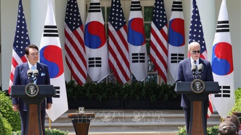 (VOVWORLD) - ប្រធានាធិបតីកូរ៉េខាងត្បូង លោក Yoon Suk Yeol កំពុងអញ្ជើញបំពេញទស្សនកិច្ចរយៈពេល ៦ ថ្ងៃ (ចាប់ពីថ្ងៃទី ២៤ ខែមេសា) ទៅកាន់រដ្ឋធានីវ៉ាស៊ីនតោន សហរដ្ឋអាមេរិក ហើយមានកិច្ចប្រជុំកំពូលជាមួយសមភាគីប្រទេសម្ចាស់ផ្ទះលោក Joe Biden។ សេចក្តីថ្លែងការណ៍រួមដែលបានចេញបន្ទាប់ពីកិច្ចប្រជុំកំពូលកាលពីថ្ងៃទី ២៦ ខែមេសា បានបញ្ជាក់ជាថ្មីម្ដងទៀតថា ទំនាក់ទំនងសម្ព័ន្ធភាពនឹងកាន់តែរឹងមាំ ដែលកត់សម្គាល់ការផ្លាស់ប្តូរថ្មីខាងគុណភាពក្នុងទំនាក់ទំនងទ្វេភាគីអាមេរិក-កូរ៉េខាងត្បូង។