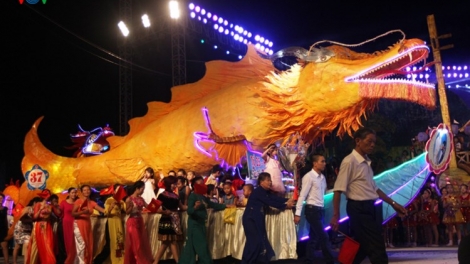 (VOVworld) - ភ្លើងគោមយក្សមានចំនួនជិត១០០ត្រូវ បានគេដង្ហែរ តាមវិថីនានានៅខេត្ត Tuyen Quang នៅ ក្នុងពិធីបុណ្យសំពះព្រះខែឆ្នាំ២០១៥ ធ្វើឲ្យបរិយា កាសនៅទីនេះសប្បាយអ៊ូអរផុសផុល។
