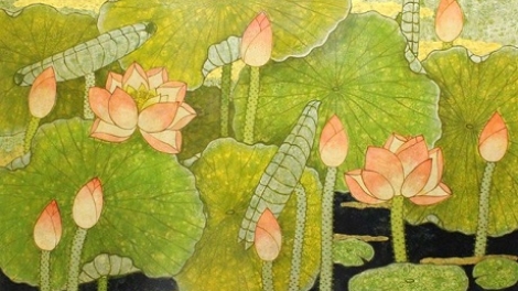 VOVWORLD_គណៈកម្មាធិការគ្រប់គ្រងវិថី បុរាណក្រុងហាណូយទើបនឹងសហការជាមួយក្រុម វិចិត្រករមជ្ឈមណ្ឌល UNESCO វិចិត្រសិល្បៈហាណូយ បើកពិពណ៌ក្រោមប្រធានបទផ្កាឈូកនៅមជ្ឈមណ្ឌល ប្រាស្រ័យវប្បធម៌វិថីបុរាណហាណូយ។ប្រធានបទផ្កា ឈូកនេះផ្សាភ្ជាប់ជាមួយរូបភាពលោកប្រធានហូជី មិញនិងប្រទេសវៀតណាម។