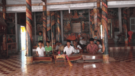 ក្រុមជនវ័យក្មេងលេងភ្លេងពិណពាទ្យនៅវត្ត Doi។