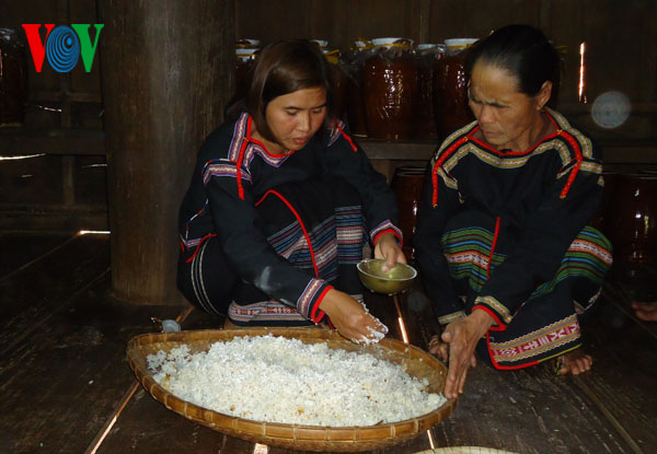 នៅផ្ទះរបស់អ្នកស្រី H Nuong Byă នៅភូមិ Ea Tieu ឃុំ Ea Tieu ស្រុក Cu Kuin ខេត្ត Dak Lak ការប្រមូលផលកាហ្វេទើបតែបានបញ្ចប់ ហើយក្រុមគ្រួសារទាំងមូលកំពុងត្រៀមរៀបចំគ្រឿងផ្សំសម្រាប់ការផ្អាប់ស្រា។ សមាជិកផ្សេងៗទៀតក្នុងក្រុមគ្រួសារ បានលាងសម្អាត ពាងធំ ពាងតូច ដើម្បីដាក់ស្រា ថែមទាំងពិនិត្យឡើងវិញ មេដំបែស្រា អង្កាម និងស្លឹកចេក ជាដើម។ នៅឆ្នាំនេះ ក្រុមគ្រួសាររបស់អ្នកស្រី Huong បានធ្វើស្រាពាងទាំងធំ ទាំងតូច ចំនួន៨ពាង សម្រាប់ សាច់ញាតិជិតឆ្ងាយ មកពិសារ នាឱកាសបុណ្យចូលឆ្នាំថ្មីប្រពៃណី។ អ្នកស្រីបានរៀបរាប់ថា៖ ដើម្បីមានស្រាឆ្ងាញ់ៗ គឺត្រូវរៀបចំគ្រឿងផ្សំ រហូតដល់រូបមន្តធ្វើ រួមទាំងគិតគូរពីពេលវេលាយ៉ាងម៉េចឲ្យសមស្របទៀតផង ដើម្បីស្រាមានគុណភាពខ្ពស់។ ក្រុមគ្រួសារនីមួយៗមានរូបមន្តផ្សេងៗគ្នា ដើម្បីបង្កើតនូវរសជាតិស្រាដោយឡែករបស់ខ្លួន។