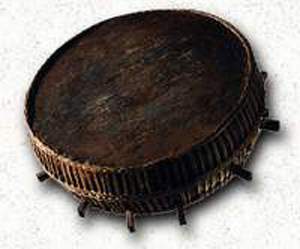 ដាក់ស្គូរនៅមុខពោះ ដោយប្រើម្រាមដៃទះលើស្បែកដើម្បីបន្លឺស្នូរសម្លេងមាន