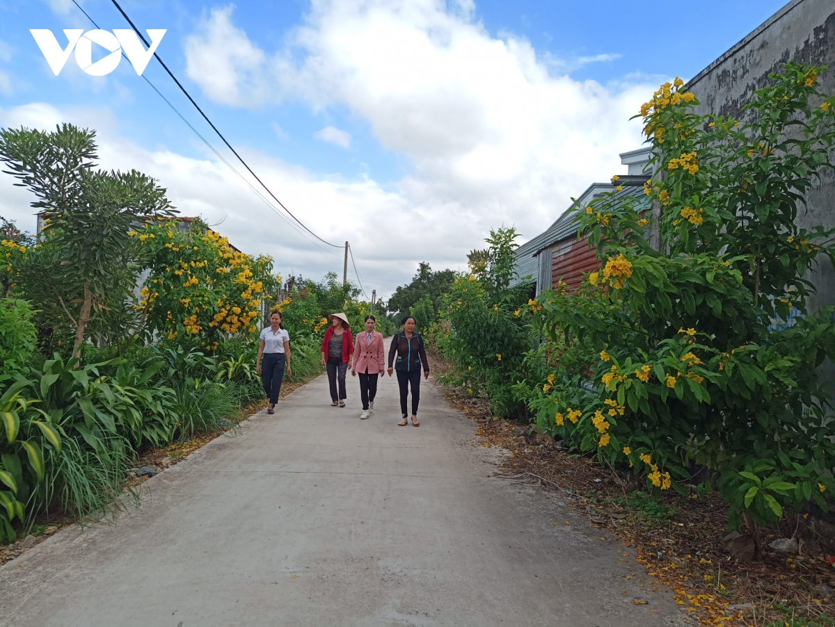 ផ្លូវចាក់បេតុង ដោយត្រូវបានដាំផ្កានៅទាំងសង្ខាង ធ្វើឲ្យមុខមាត់ជនបទស្រស់ស្អាតជាងទៀត។ (រូបថត៖ VOV) |