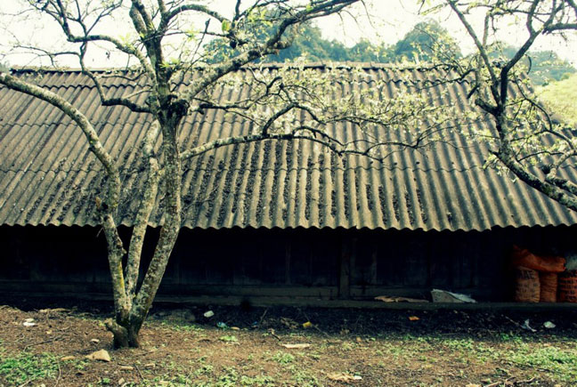 | ផ្ទះជនជាតិ Mong Hoa បានធ្វើដោយព្រៃឈើទាំងស្រុងនៅលើផ្ទៃដីមានដំបូលប្រក់ filbrociment។ (soi.com.vn) |