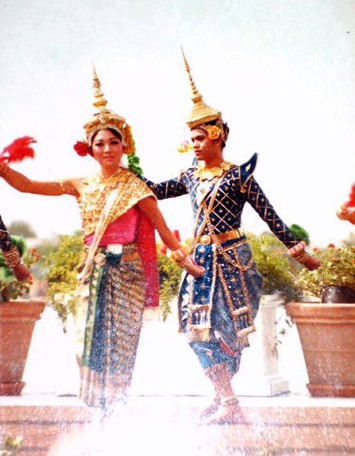 ក្នុងការសម្តែងតាមរយៈក្បាច់រាំនិងរបាំងមុខ។