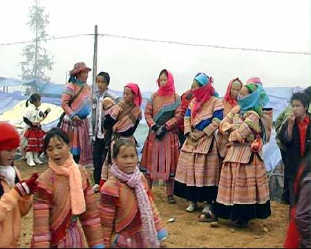 បៃតងក្រហមជាច្រើន។ ជនរួមជាតិ Mong ចូលចិត្តសំពត់ក្រហមលឿងនិងបៃតង។ ពណ៌បៃតងជានិមិត្តរូបឲ្យស្លឹកឈើរីឯលឿងក្រហមជានិមិត្តរូបឲ្យផ្កា។”