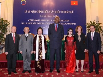 | អនុប្រធានរដ្ឋវៀតណាមលោកស្រី Nguyen Thi Doan និងលោក Abdou Diouf អគ្គលេខាធិការអង្គការFrancophonieក្នុងពិធីរំលឹកទិវាFrancophonieនៅទីក្រុងហាណូយ (រូបថតៈ tgvn.com.vn) |