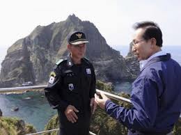 | ប្រធានាធិបតីកូរ៉េខាងត្បូង Lee Myung-bak នាំមុខក្រុមមន្ត្រីមួយទៅកាន់កោះ Dokdo ជាភាសាកូរ៉េខាងត្បូងនិង Takeshima ជាភាសាជប៉ុនបានបណ្ដាលប្រតិកម្មយ៉ាងខ្លាំងក្លាពីភាគីជប៉ុន។ |