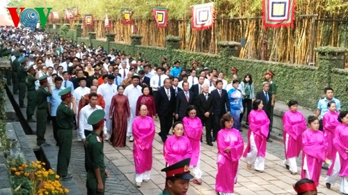ណាមគ្រប់រូបរកមកពិធីបុណ្យរំលឹកគុណបណ្ដាស្ដេច Hung ដ៏ពិសិដ្ឋដោយការគោរព។