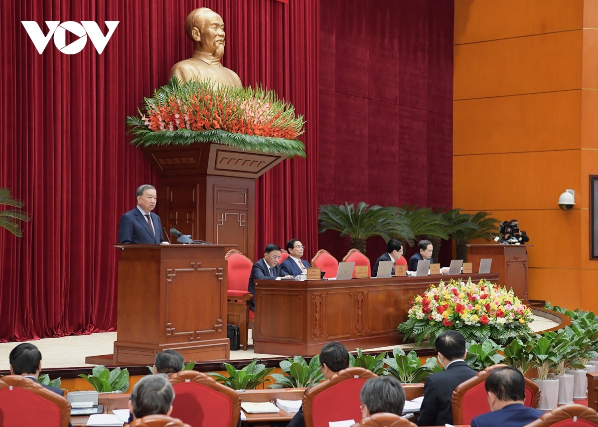 លោកអគ្គលេខាបក្ស To Lam អញ្ជើញថ្លែងសុន្ទរកថាបើកសន្និបាតគណៈកម្មាធិការមជ្ឈិមបក្សនីតិកាលទី១៣។ (រូបថត៖ VOV) |