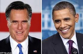 | ប្រធានាធិបតីអាមេរិក Obama និងគូរបដិបក្ខ Mitt Romney (រូបថតៈ Internet) |