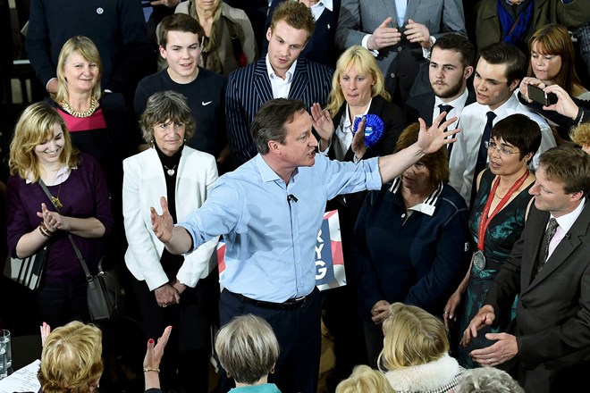 | លោក David Cameron នៅជាមួយអ្នកគាំទ្រនាថ្ងៃទី៥ឧសភា (រូបថតៈAFP ) |