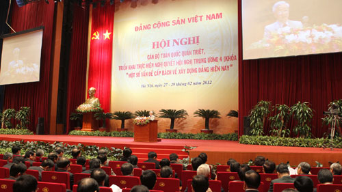 | បណ្តាថ្នាក់ដឹកនាំបក្ស រដ្ឋ និងតំណាងនានា ក្នុងសន្និបាតអនុវត្តសេចក្តីសម្រេចចិត្តមជ្ឈឹមលើកទី៤(រូបរត: TTXVN) |