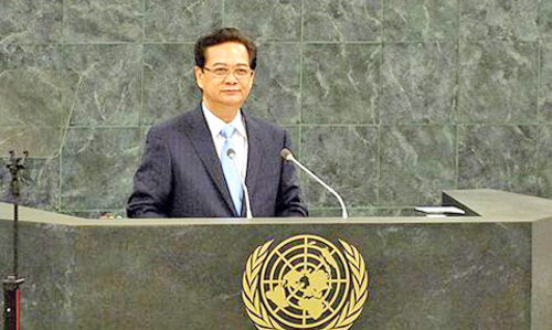 Nguyen Tan Dung នៅវេទិកា មហាសន្និបាតអង្គការសហប្រជាជាតិ នៅ New York នាថ្ងៃទី ២៧ កញ្ញា កន្លងទៅនេះ។ ជាមួយទិសដៅនេះ វៀតណាមយកចិត្តទុក