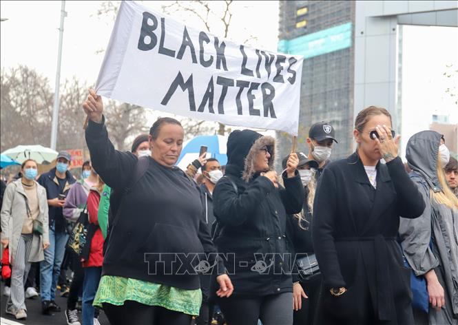 ប្រជាជនចូលរួមក្នុងការដើរក្បួនដើម្បីប្រឆាំងនឹងការរើសអើងជាតិសាសន៍នៅ Auckland ប្រទេស New Zealand (រូបថត៖ THX / TTXVN) |