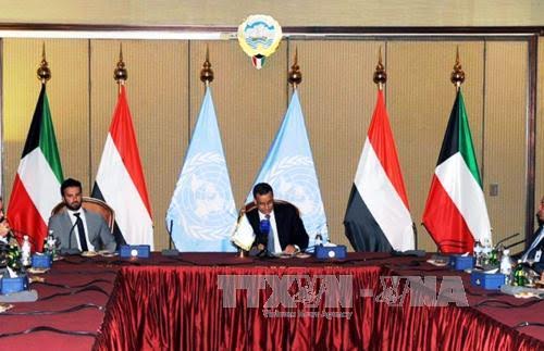 | បេសកជនពិសេសអ.ស.បទទួលបន្ទុកបញ្ហាយេម៉ែន លោកIsmail Ould Cheikh Ahmed (កណ្តាល)នៅកិច្ចចរចារសន្តិភាពនៅ Kuwait នាថ្ងៃទី១៧កក្កដា (រូបថតៈ AFP/ TTXVN) |