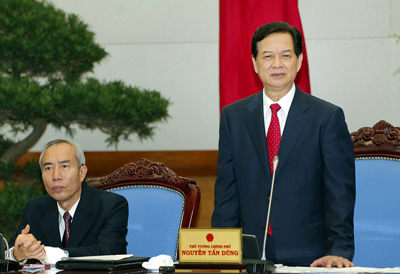 | នាយករដ្ឋមន្ត្រីវៀតណាម លោក Nguyen Tan Dung និងប្រធានគណះកម្មាធិការមជ្ឈឹម រណះសិរ្យមាតុភូមិវៀតណាម លោក Huynh Dam បានរួមសហការធ្វើអធិបតី សន្និសីទ(http://baodientu.chinhphu.vn) |